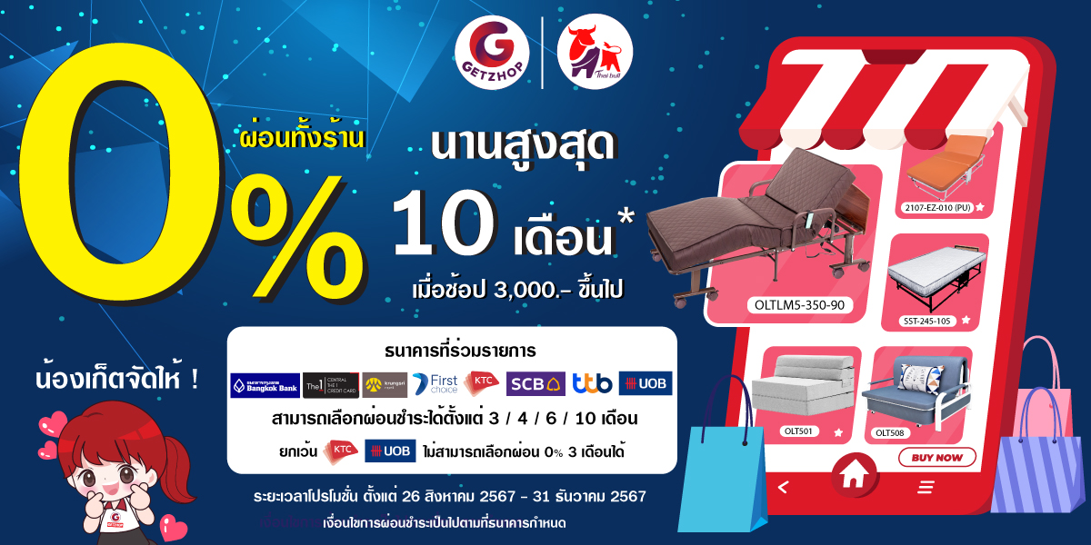 เตียงนอนไฟฟ้า เตียงผู้สูงอายุ เตียงนอนเบาะยางพารา เตียงพับไฟฟ้า ปรับระดับแยก (หัวเตียง-ปลายเตียง) Thaibull รุ่น OLTLM5-3452M-90B
