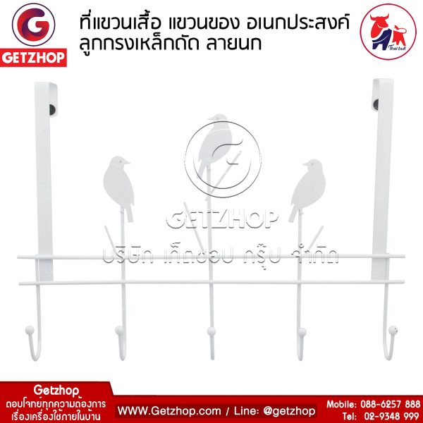 Karabada ที่แขวนเสื้อ แขวนของ อเนกประสงค์ ลูกกรงเหล็กดัด ลายนก – สีขาว
