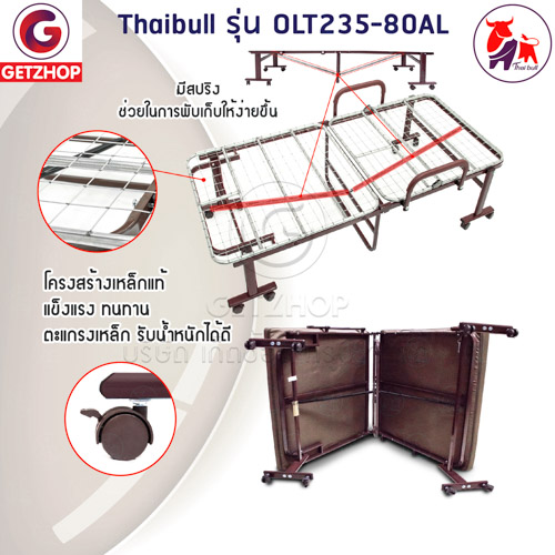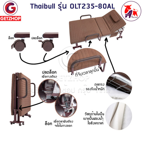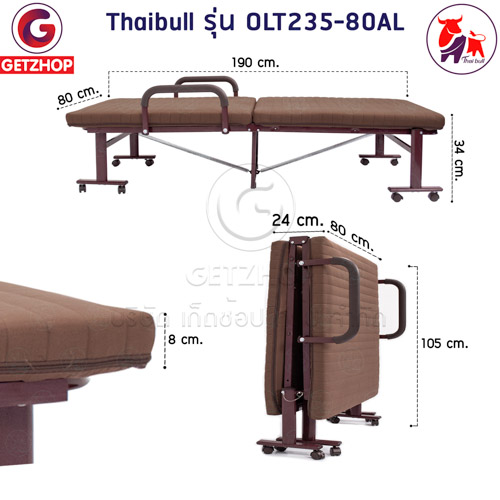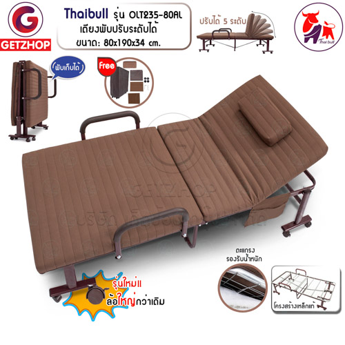 เตียงนอนพับอเนกประสงค์ เตียงเสริมปรับระดับ เตียงนอนพับได้ Thaibull รุ่น OLT235-80AL แถมฟรี! อุปกรณ์