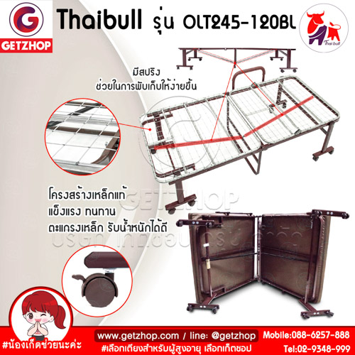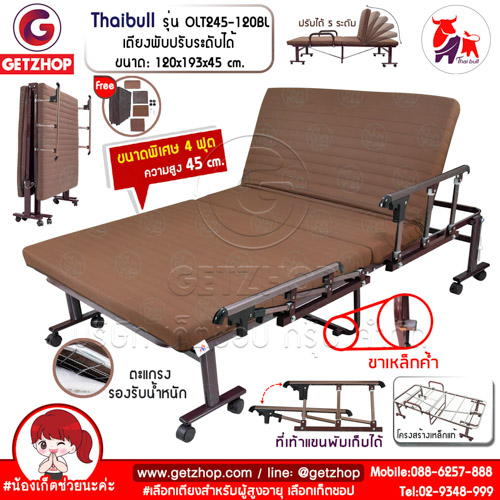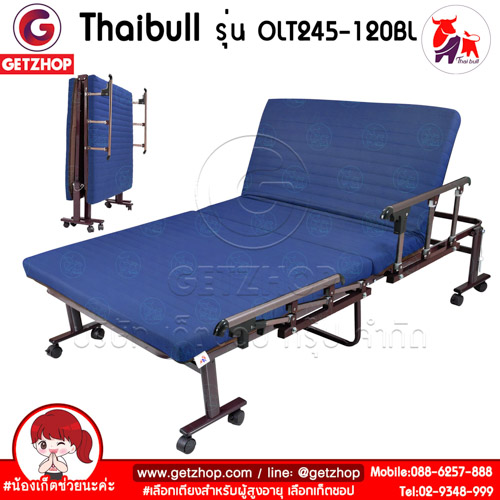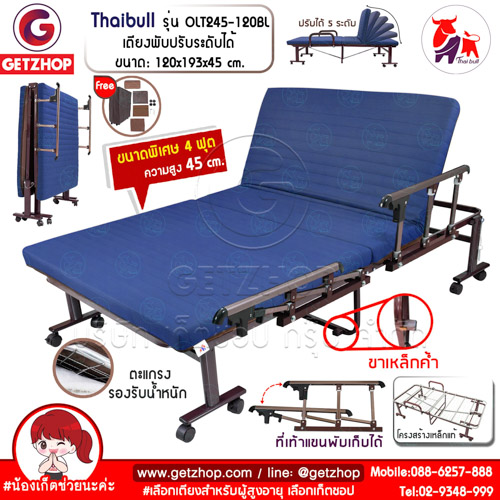Thaibull เตียงพับปรับระดับได้ เตียงเสริม เตียง 4ฟุต Fold bed Extra bed รุ่น OLT245-120BL พิเศษ! (แขนพับได้)