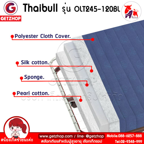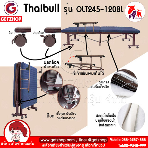 – เตียงนอน 2 ตอน ปรับระดับได้ Thaibull รุ่น OLT245-120B ความสูง 45 cm. ลุกนั่งสะดวก เหมาะกับผู้ป่วยหรือผู้สูงอายุ