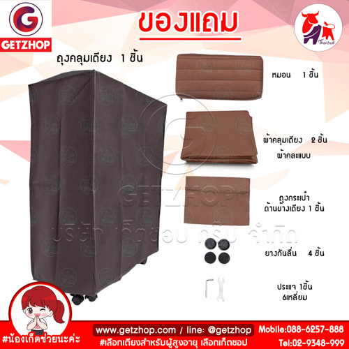 – โครงเหล็กหนาแข็งแรง วัสดุด้านในเป็นเบาะฟองน้ำมีตะแกรงเหล็กรองเตียง เพื่อรับน้ำหนักได้แข็งแรง