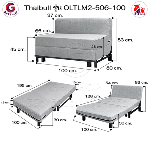 1.ขนาดปรับเป็นโซฟา: 100 x 80 x 83 ซม. (ความสูงจากพื้นถึงพนักพิง)