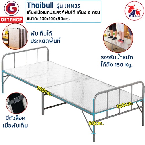 Thaibull เตียงไม้แบบพับได้ เตียงเหล็ก เตียงพับอเนกประสงค์ เตียงนอนพับได้ เตียง 2 ตอน รุ่น JMN35 (สีขาว)