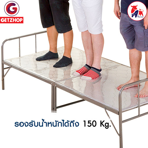 • เตียงนอนพับได้ โครงสร้างทำจากเหล็ก มีความทนทาน พ่นสีกันสนิมมีความหนาถึง 20 มม.