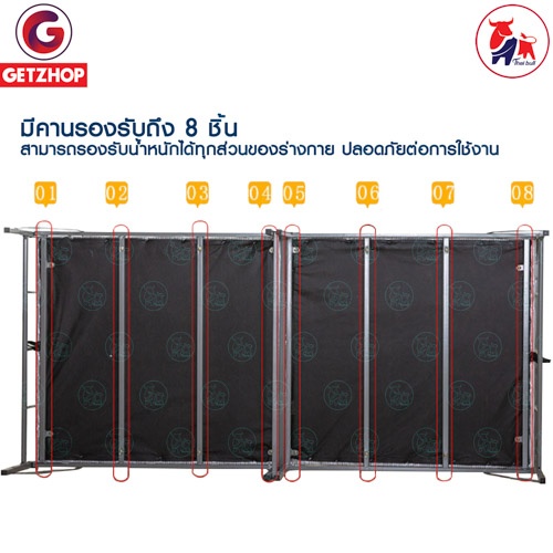 • เตียงนอนพับได้ รุ่นใหม่! ออกแบบดีไซน์ทันสมัย มาเพื่อเตียงเสริมโดยเฉพาะ มีคานรองรับถึง 8 ชิ้น (สามารถรองรับน้ำหนักได้ทุกส่วนของร่างกาย) ปลอดภัยต่อการใช้งาน