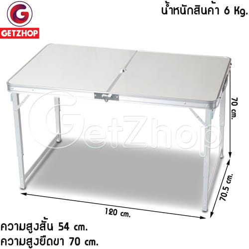 Thaibull โต๊ะพับอลูมิเนียม โต๊ะปิคนิคพับได้ โต๊ะพกพาอเนกประสงค์ แบบกระเป๋าพกพา ขนาด 70.5×120.5×70 ซ.ม. รุ่น DA1107 (สีเทา)