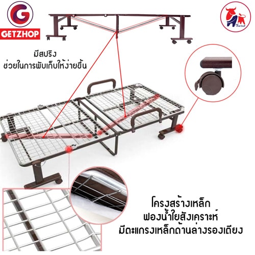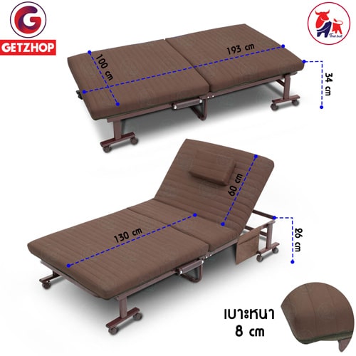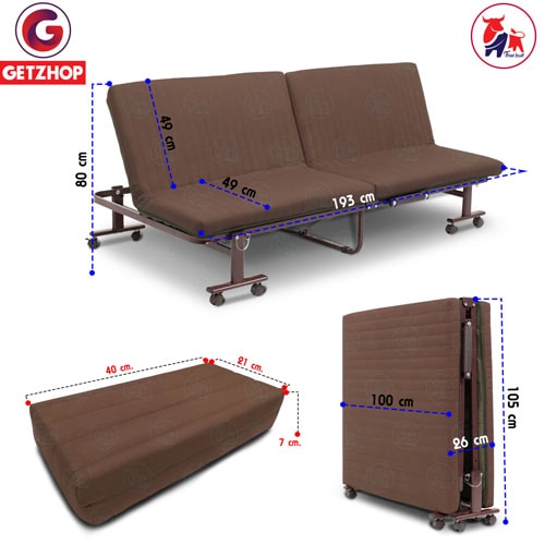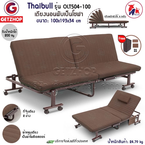 Thaibull รุ่น OLT504-100 เตียงพับได้ เตียงเหล็ก โซฟานั่ง เตียงพับ โซฟา2IN1 Sofa bed (Brown)