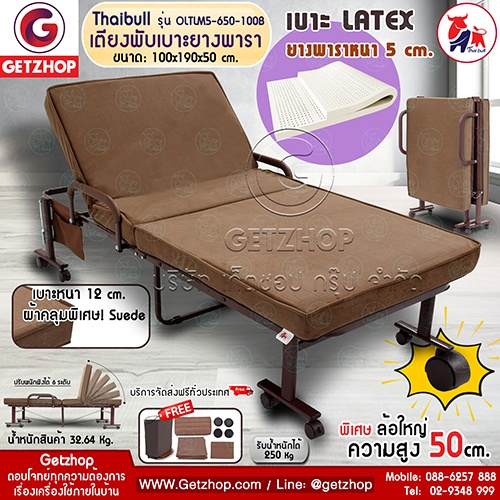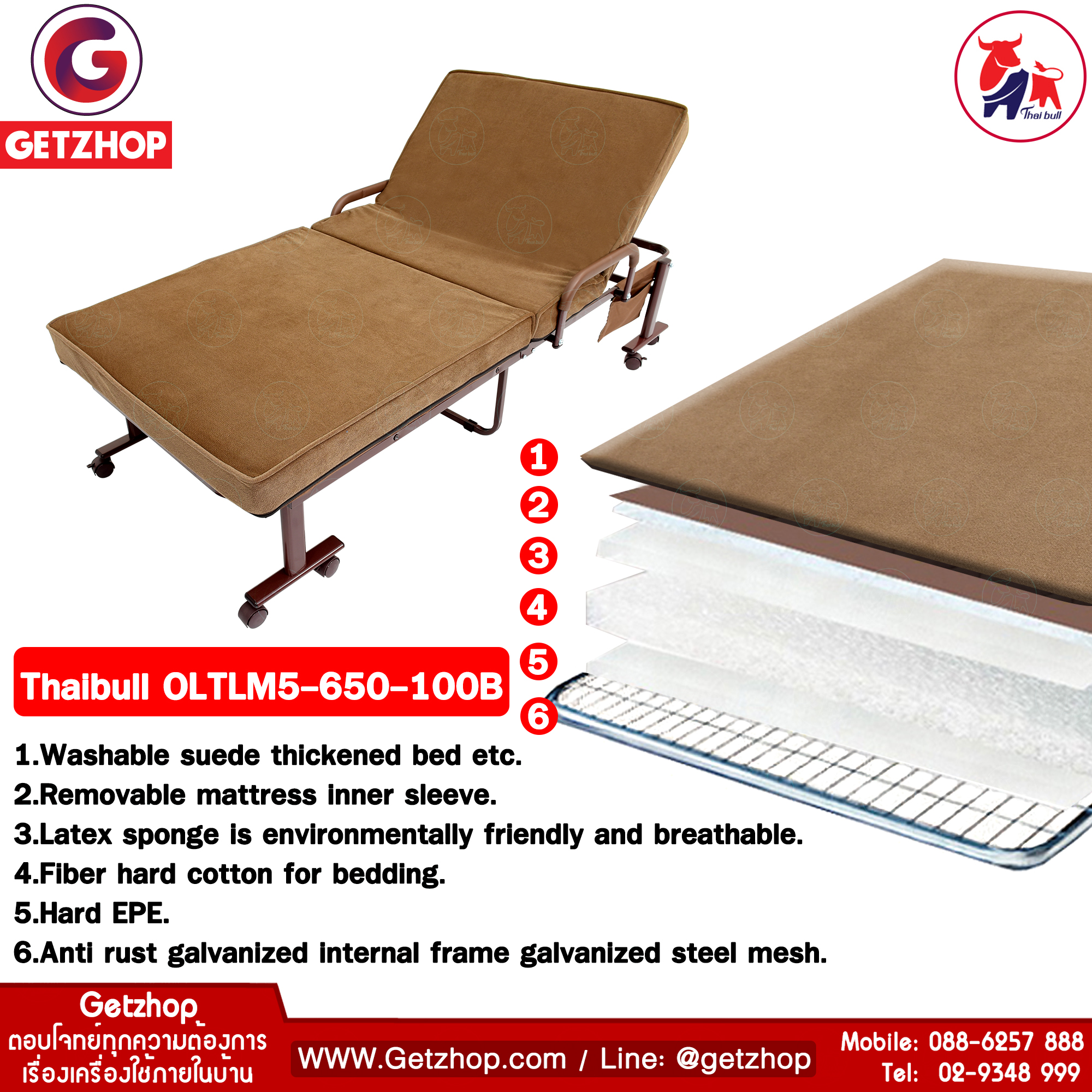 Thaibull Latex Suede รุ่น OLTLM5-650-100B เตียงนอนยางพารา เตียงพับยางพารา เตียงเหล็ก เตียงนอน เบาะยางพารา ขนาด 100*190*50 cm.