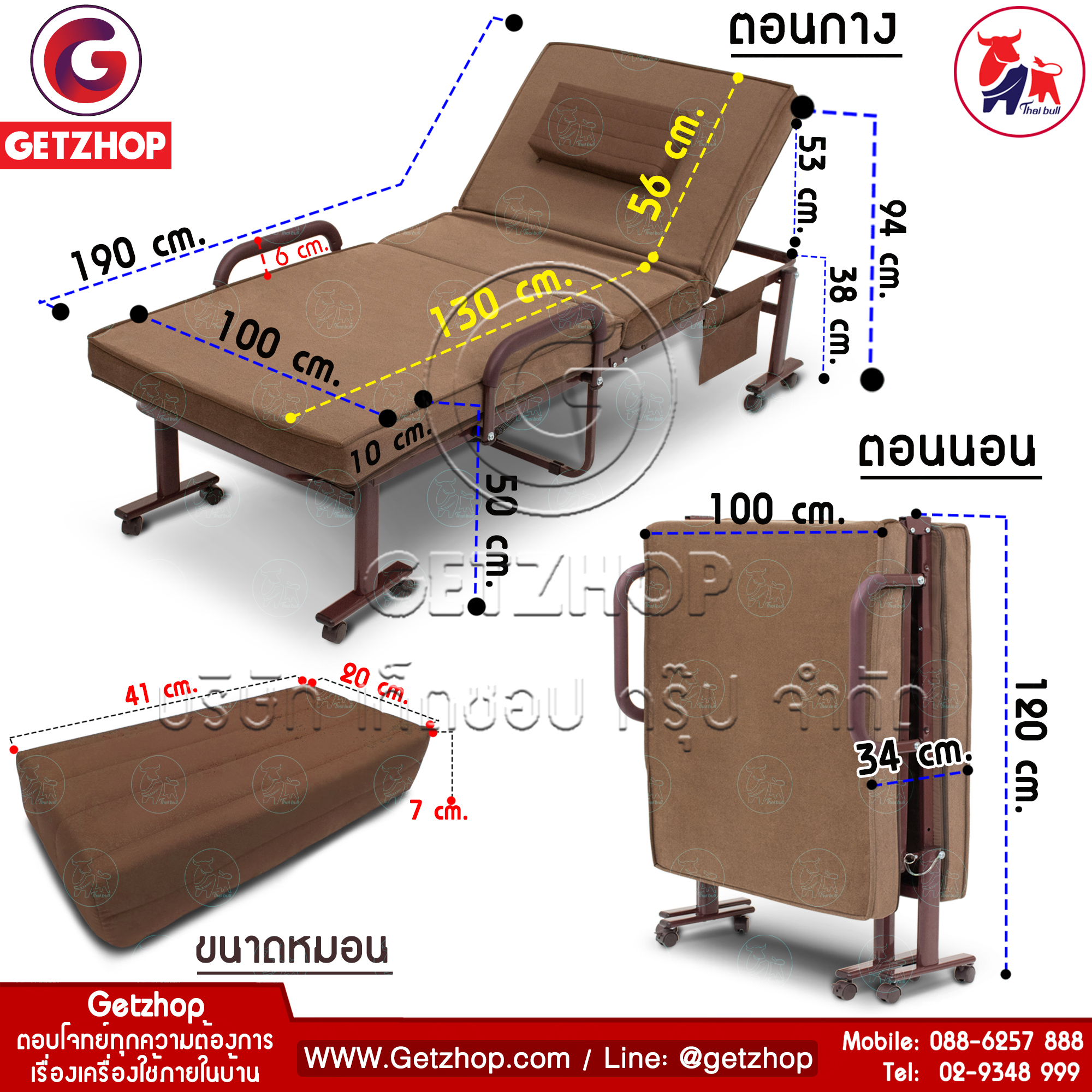 • ขนาดตอนพับ :กว้างxยาวxสูง:34x100x120 cm.