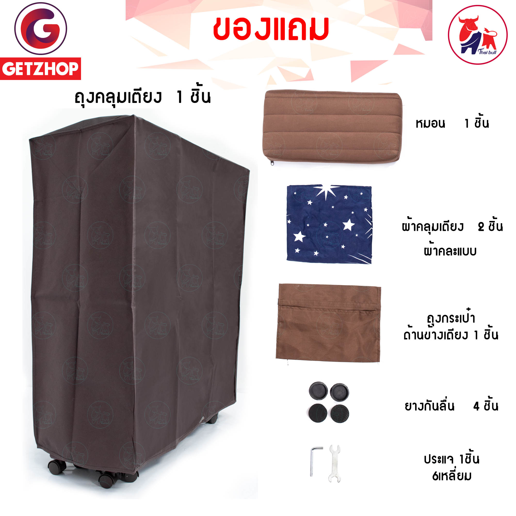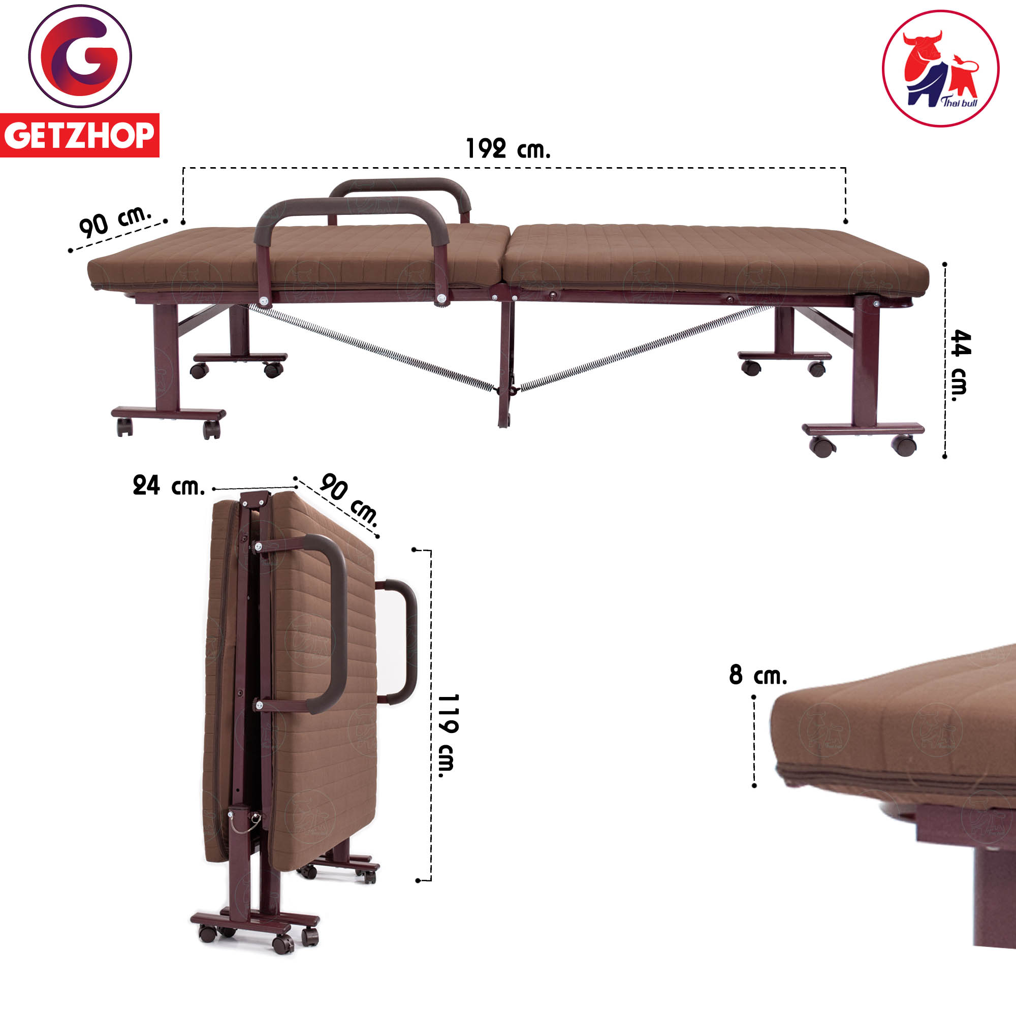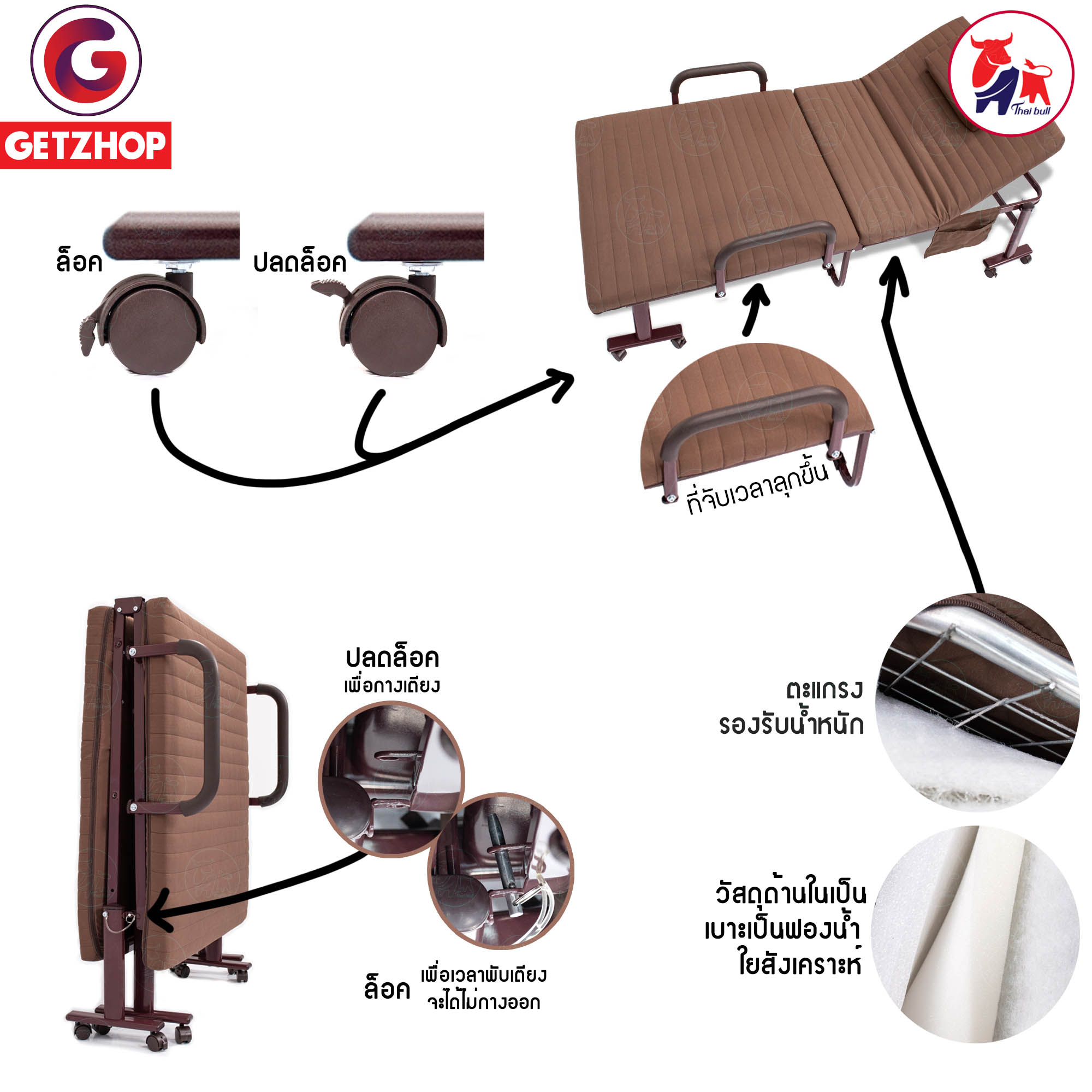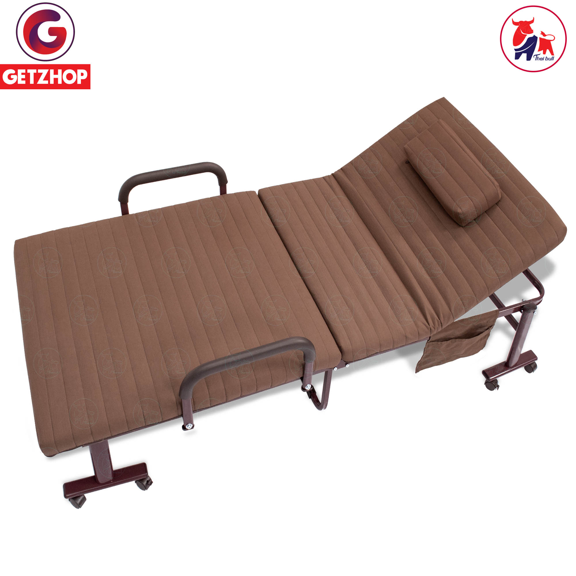 Thaibull เตียงนอนแบบพับได้ เตียงพร้อมเบาะรองนอน เตียงเหล็ก Reinforce folding bed รุ่น OLT245-90 ขนาด 3 ฟุต (Brown)