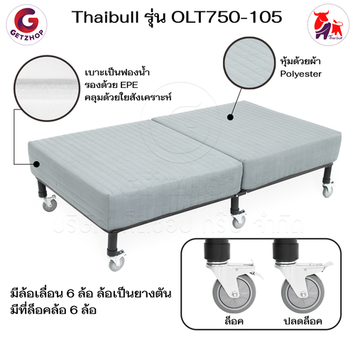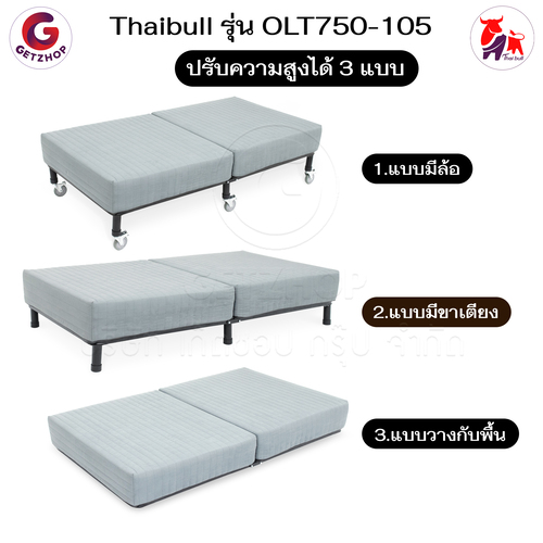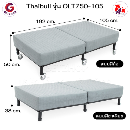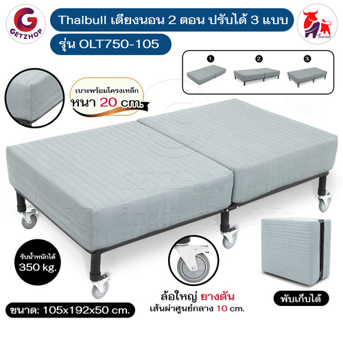 Getzhop เตียงนอน เตียงเหล็ก เตียงนอน 3 แบบ เบาะพร้อมโครงเหล็กหนา 20 cm. ปรับระดับไม่ได้ ล้อใหญ่ รุ่น OLT750-105 – สีเทา