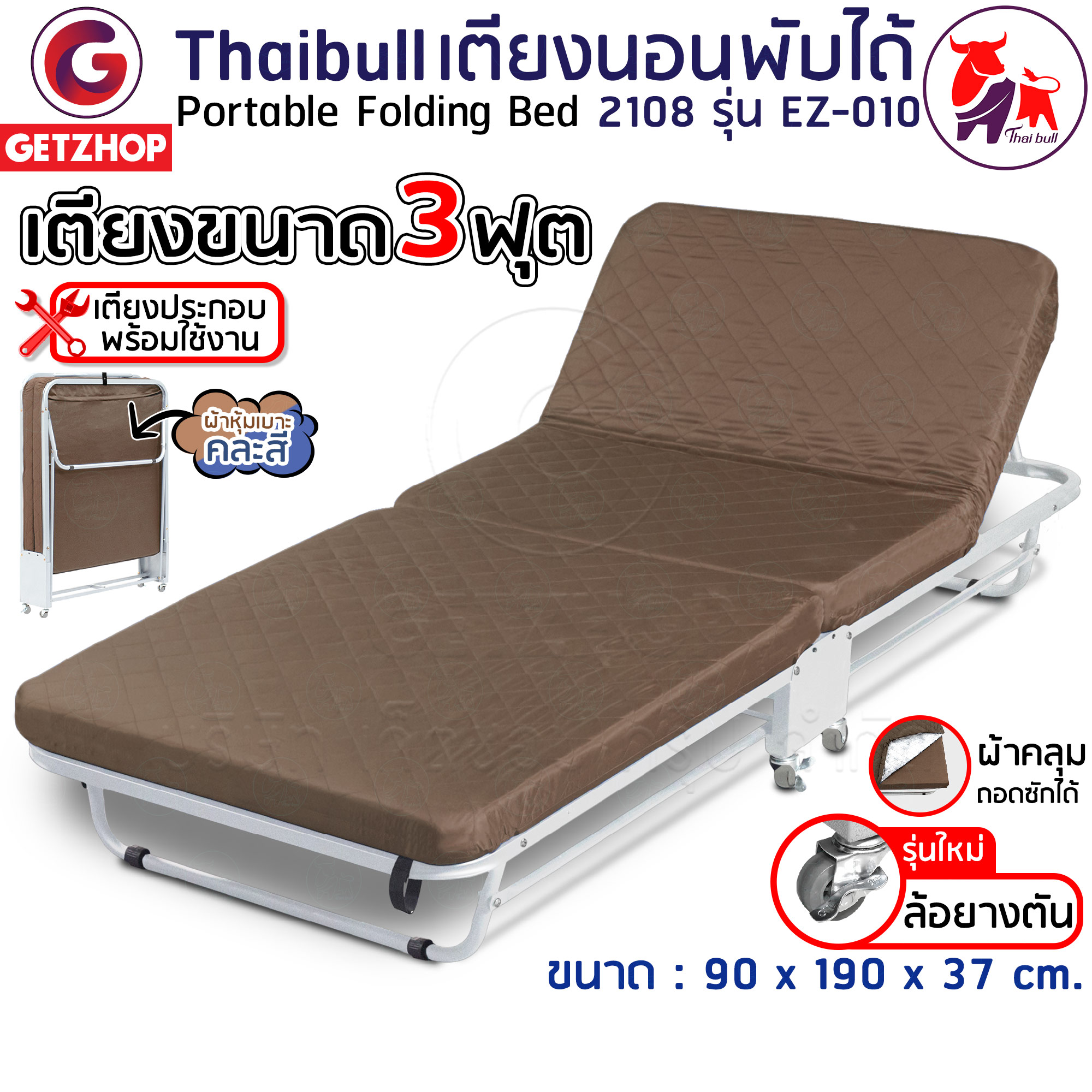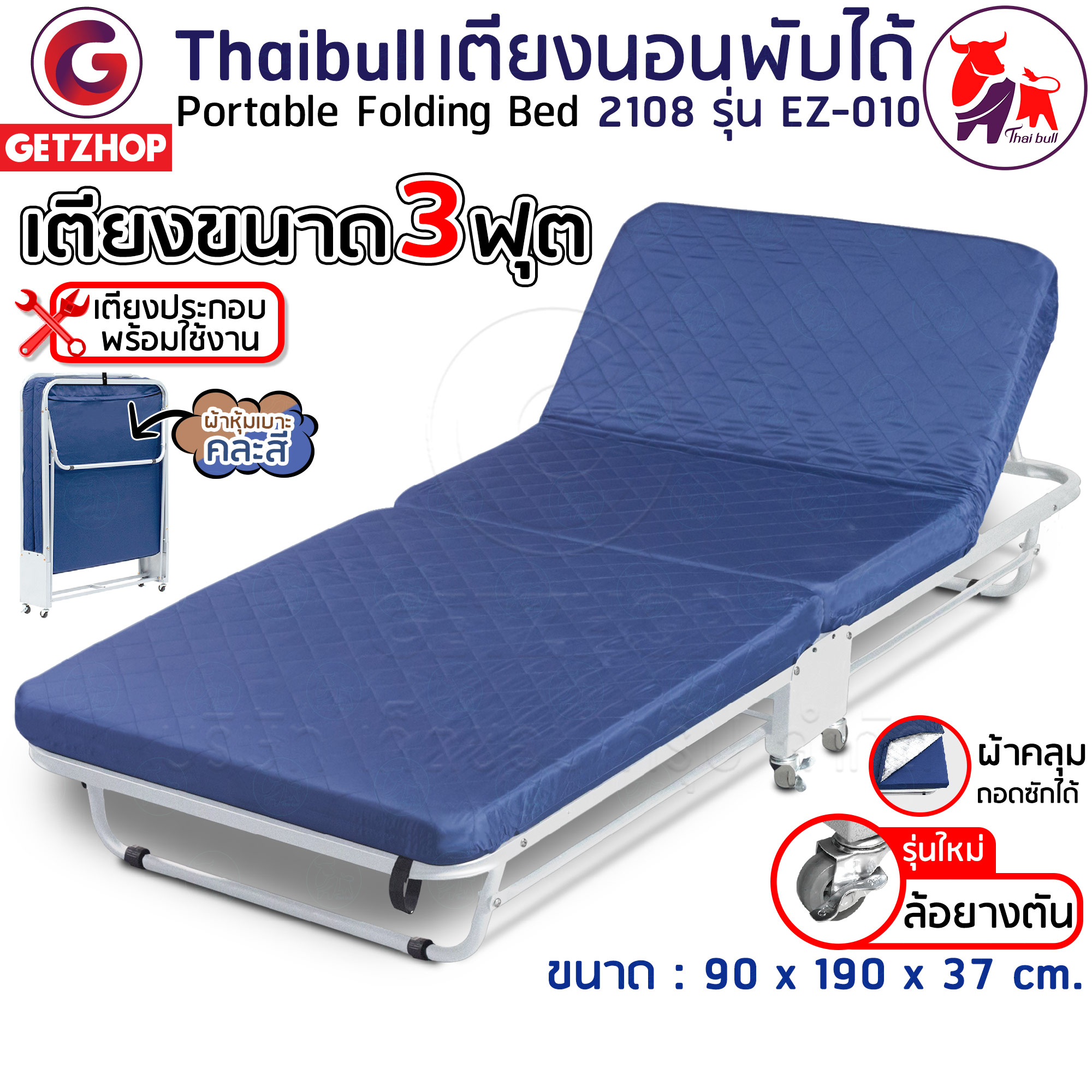 Thaibull เตียงเสริมพับได้ 3 ฟุต เตียงพร้อมเบาะรองนอน เตียงเหล็ก เตียงปรับระดับได้ 2108 รุ่น EZ-010