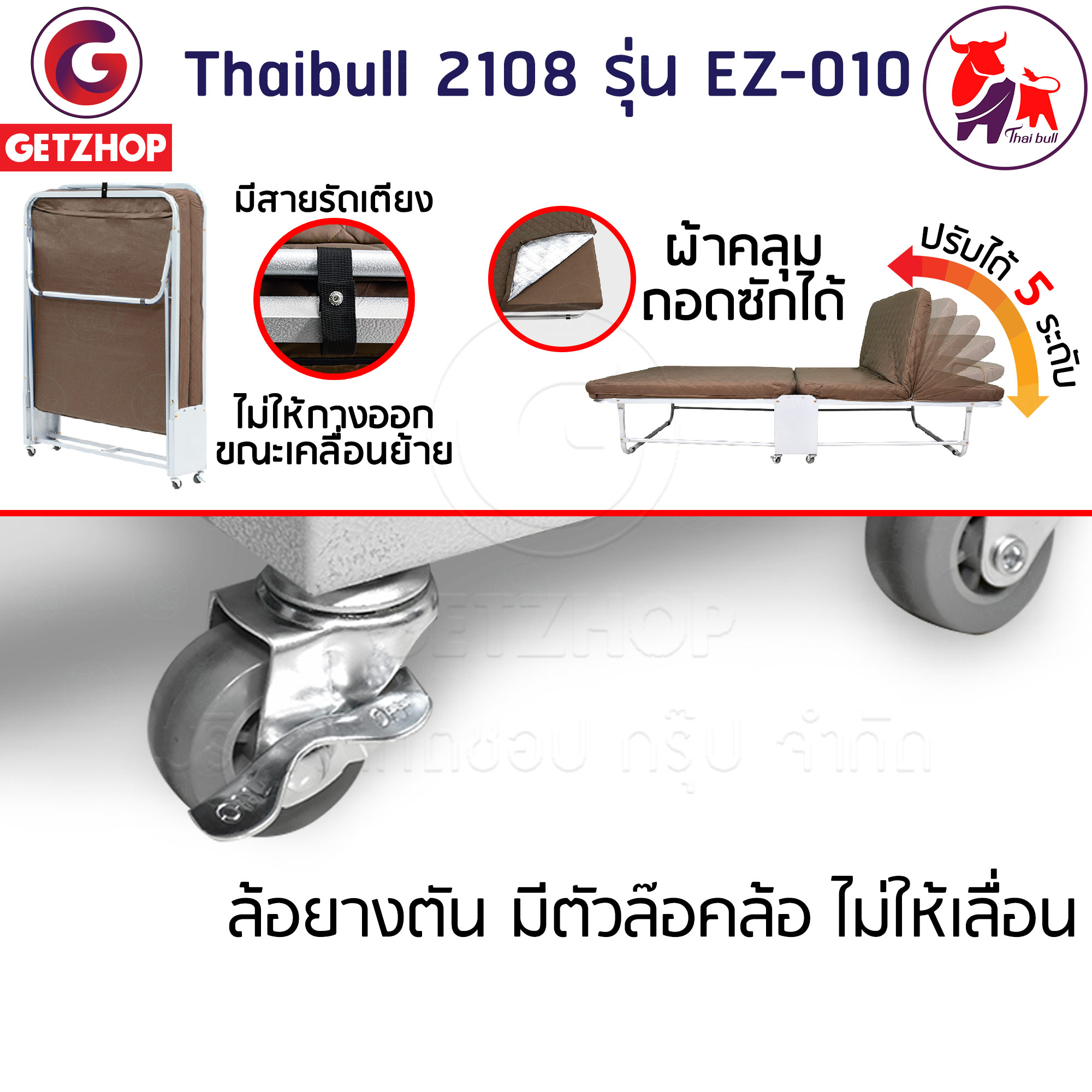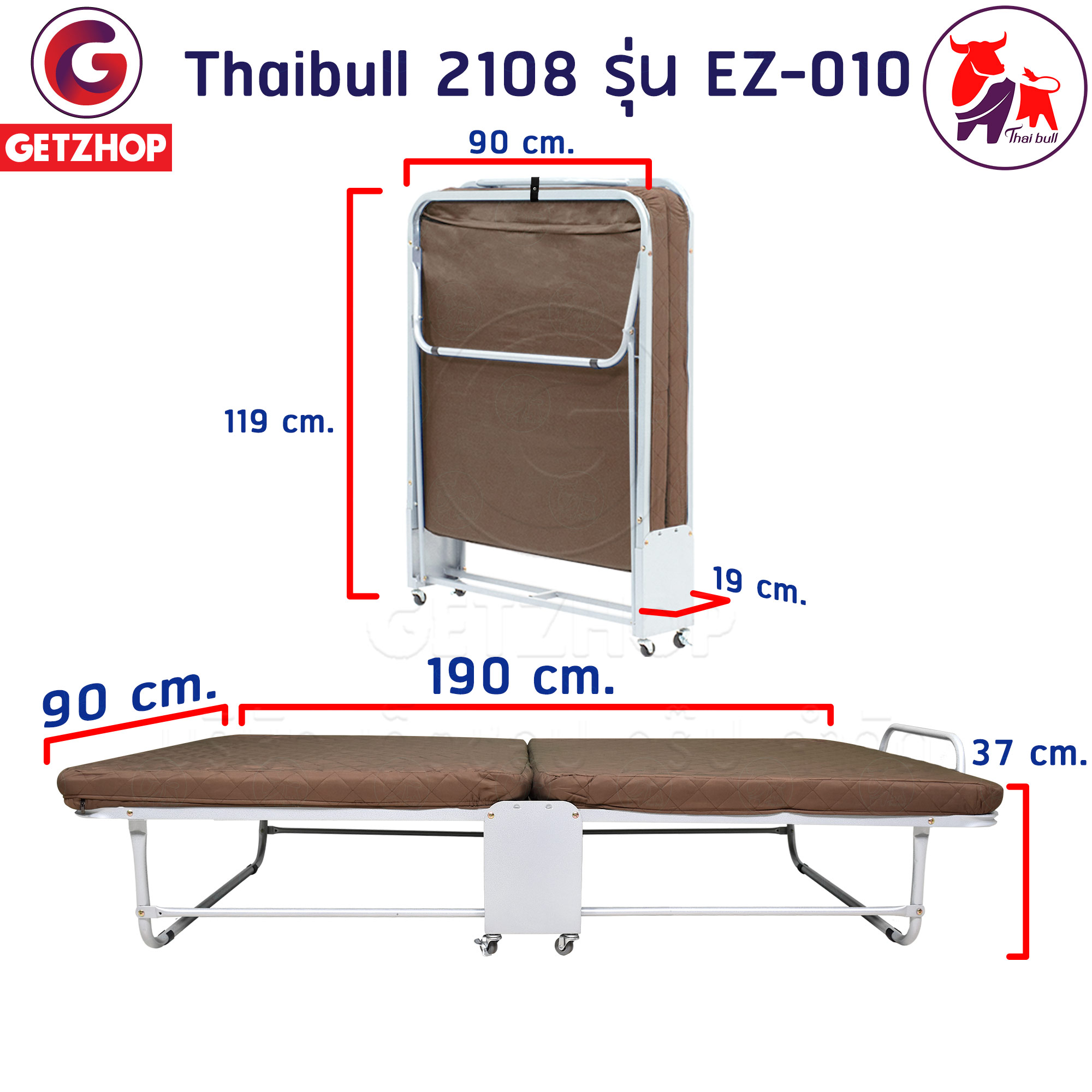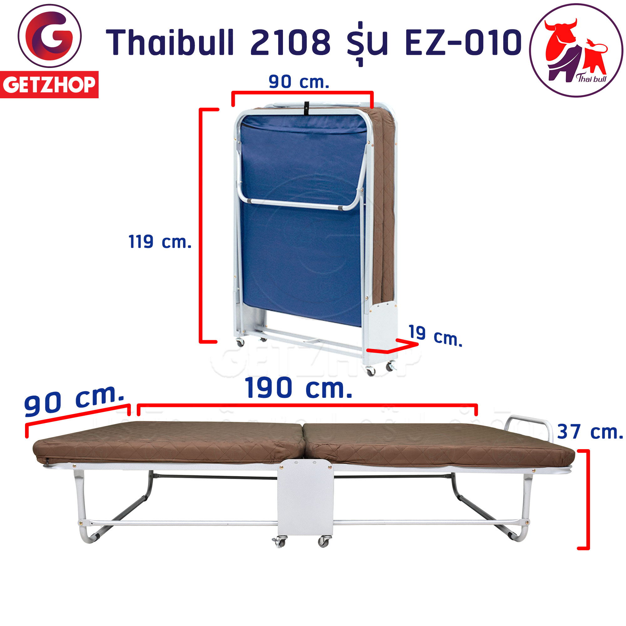 Thaibull เตียงนอน 3 ฟุต เตียงเสริมพร้อมเบาะรองนอน เตียงเหล็ก เตียงปรับระดับได้ 2108 รุ่น EZ-010