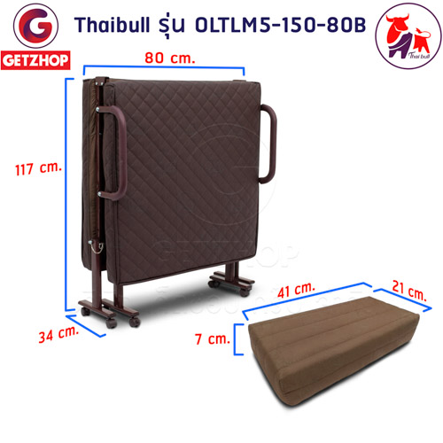 Thaibull เตียงเสริมเบาะยางพารา เตียงนอนยางพารา เตียงพับได้ เตียงผู้สูงอายุ Topper Latex รุ่น OLTLM5-150-80B (PU)