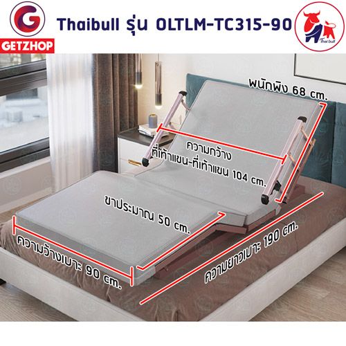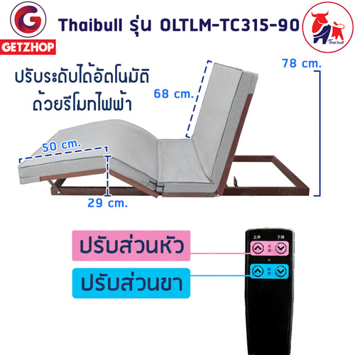 Thaibull เตียงไฟฟ้า เตียงพร้อมรีโมท เตียงปรับไฟฟ้า เตียงเสริม (ปรับบน-ล่าง) OLTLM-TC315-90 (PU Technology cloth)