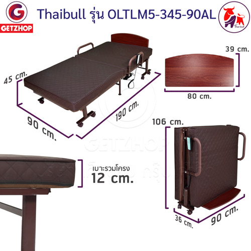 Thaibull เตียงไฟฟ้า เตียงเสริมพร้อมรีโมท เตียงพับ เตียงนอนปรับระดับได้ เตียงปรับไฟฟ้า 3 ฟุต เตียงผู้สูงอายุ (Latex) รุ่น OLTLM5-345-90AL