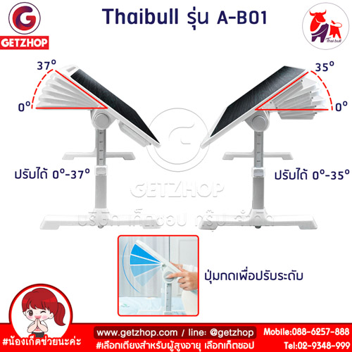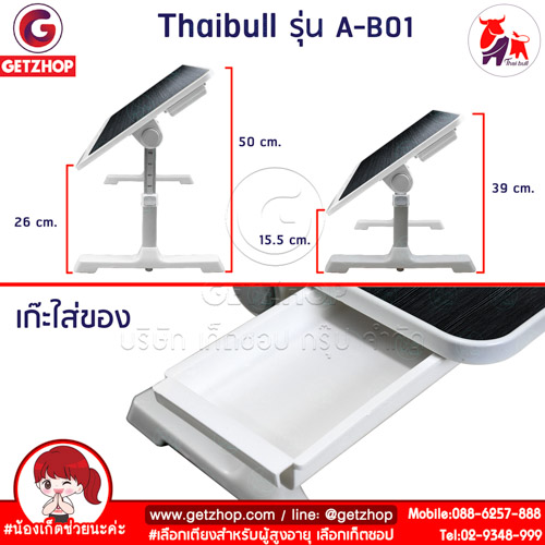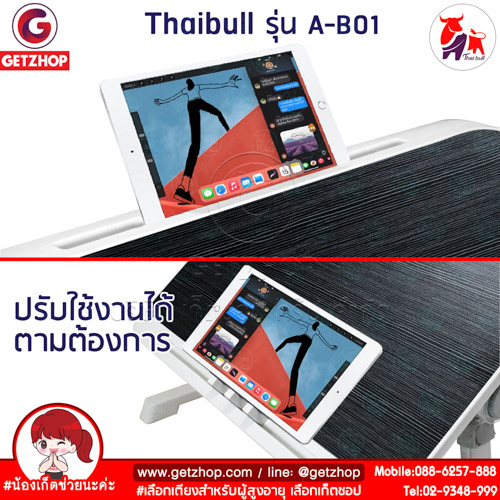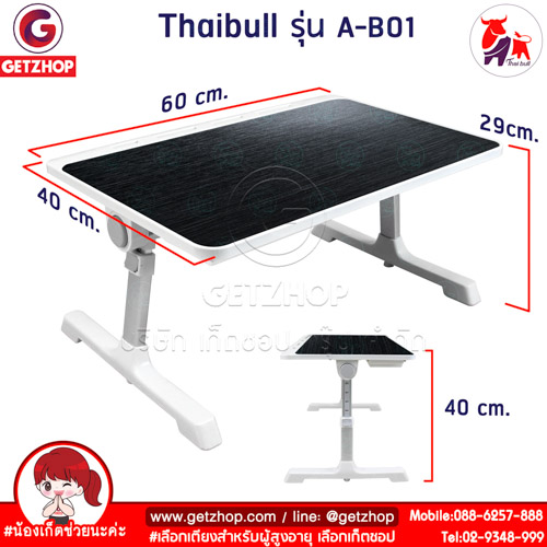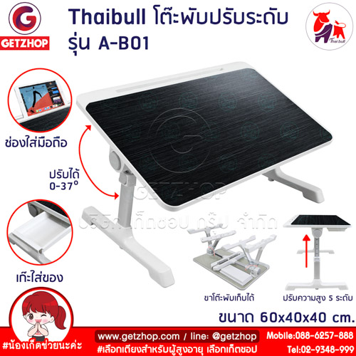 Thaibull โต๊ะพับญี่ปุ่น ปรับความสูงและองศาเอียงได้ โต๊ะวางโน๊ตบุ๊ค โต๊ะญี่ปุ่น โต๊ะคอมฯ รุ่น A-B01