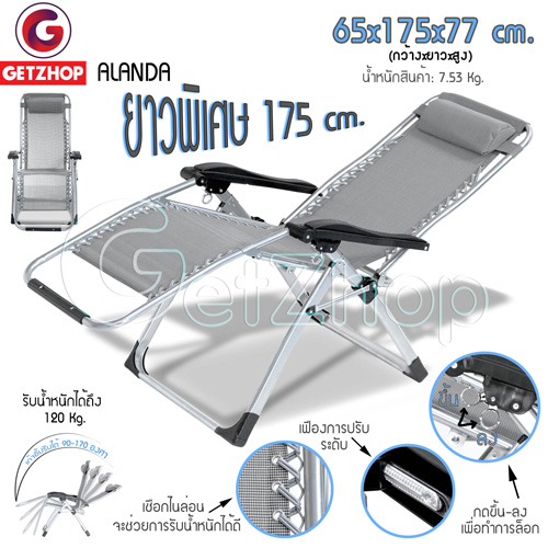 – เก้าอี้ Alanda รุ่นผ้าโปร่ง มีขนาดความยาวถึง 175 cm.