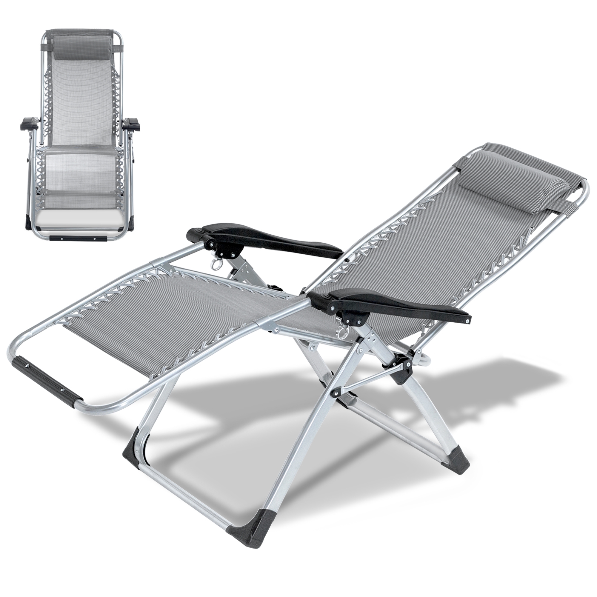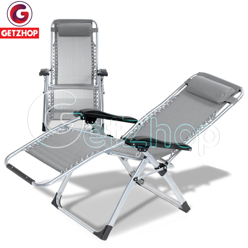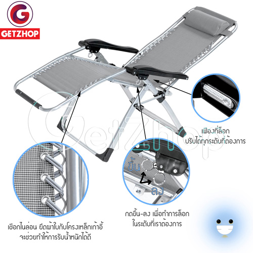 Alanda เก้าอี้พับได้ เก้าอี้ปรับเอนนั่ง-นอนได้ เก้าอี้พักผ่อน Folding chair รุ่นผ้าโปร่ง โครงสีเงิน (สีเทา)