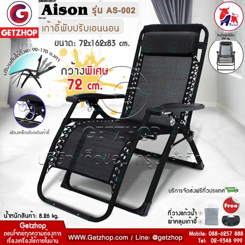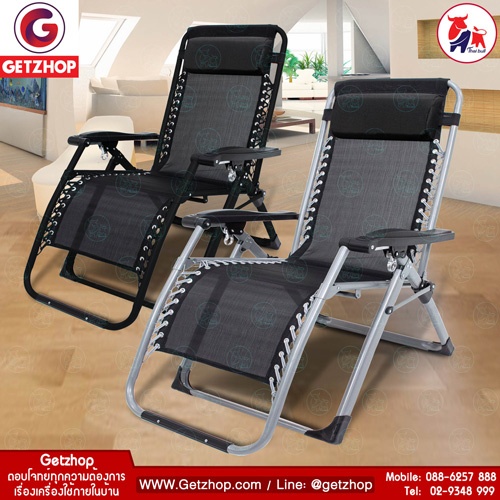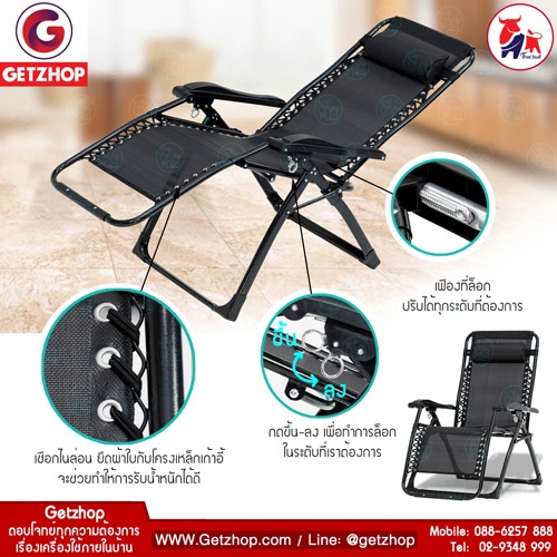 Getzhop เก้าอี้ปรับเอนนอนได้ เก้าอี้พับ เก้าอี้พักผ่อน Aison ขนาดกว้าง 72 cm.ขา สีดำ รุ่นผ้าโปร่ง (สีดำ)