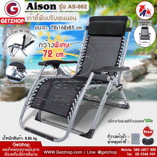Getzhop เก้าอี้ปรับเอนนอนได้ เก้าอี้พับ เก้าอี้พักผ่อน Aison ขนาดกว้าง 72 cm.ขา Silver รุ่นผ้าโปร่ง (สีดำ)