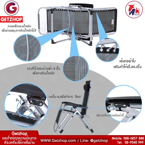 2. สามารถพับได้ นั่งได้ 90 องศา ปรับเอนนอนได้สะดวกถึง 170 องศา (ปรับระดับได้ตั้งแต่ 90-170 องศา) มีตัวล๊อคเป็นเหล็ก ทั้ง 2 ฝั่ง