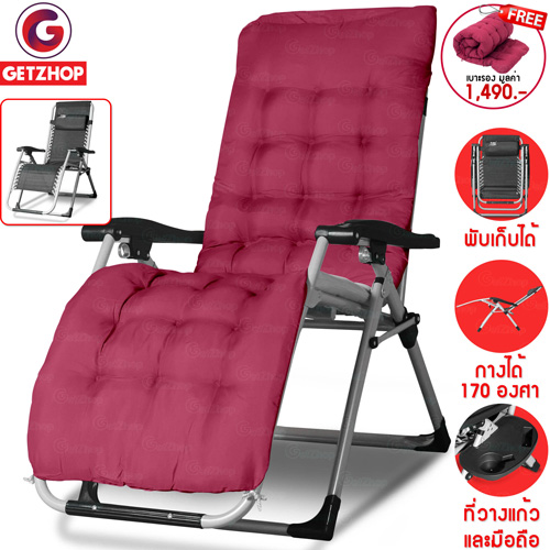 Getzhop เก้าอี้พักผ่อน เก้าอี้ปรับเอนนอน เก้าอี้พับได้ พร้อม ที่วางแก้ว wuqibao รุ่น WQB-C101 – สีแดง แถมฟรี! เบาะรองนอนพร้อมอุปกรณ์