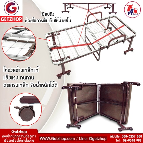 สปริงใต้เตียง มีเพื่อช่วยผ่อนแรกตอนพับเก็บ เพียงดึงที่เท้าแขนขึ้นประกบกันและใช้ตัวล็อคก็เก็บเข้าที่อย่างง่ายดาย