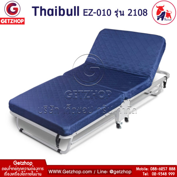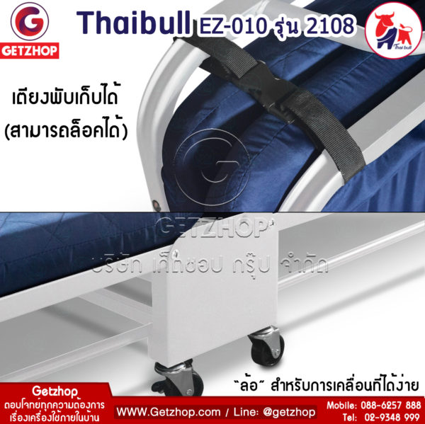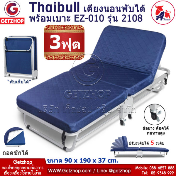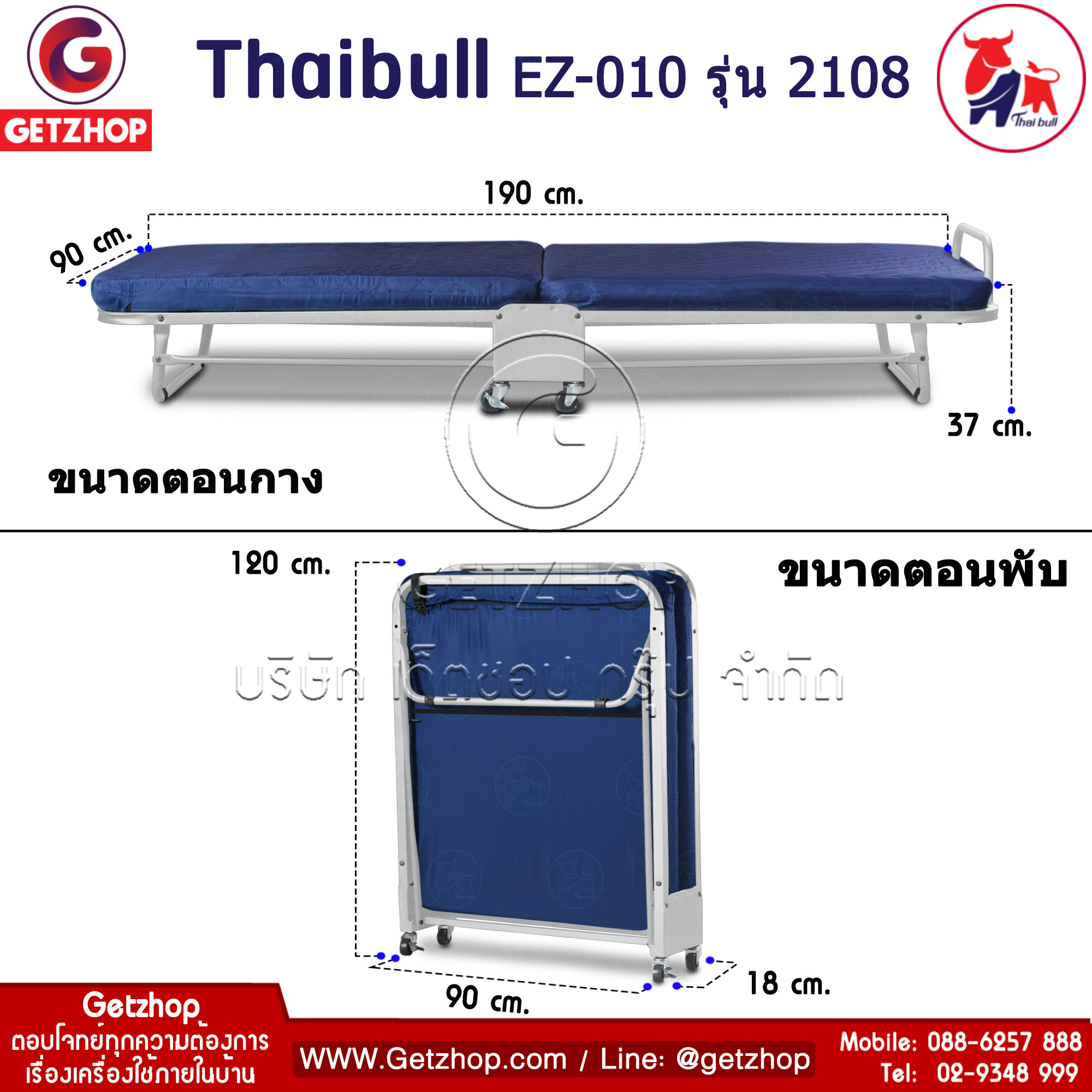 Thaibull EZ-010 รุ่น 2108 เตียงเสริมพับได้ พร้อมเบาะรองนอน เตียงพับอเนกประสงค์ เตียงโครงเหล็ก มีล้อ ขนาด 90x190x37 cm. (สีน้ำเงิน)