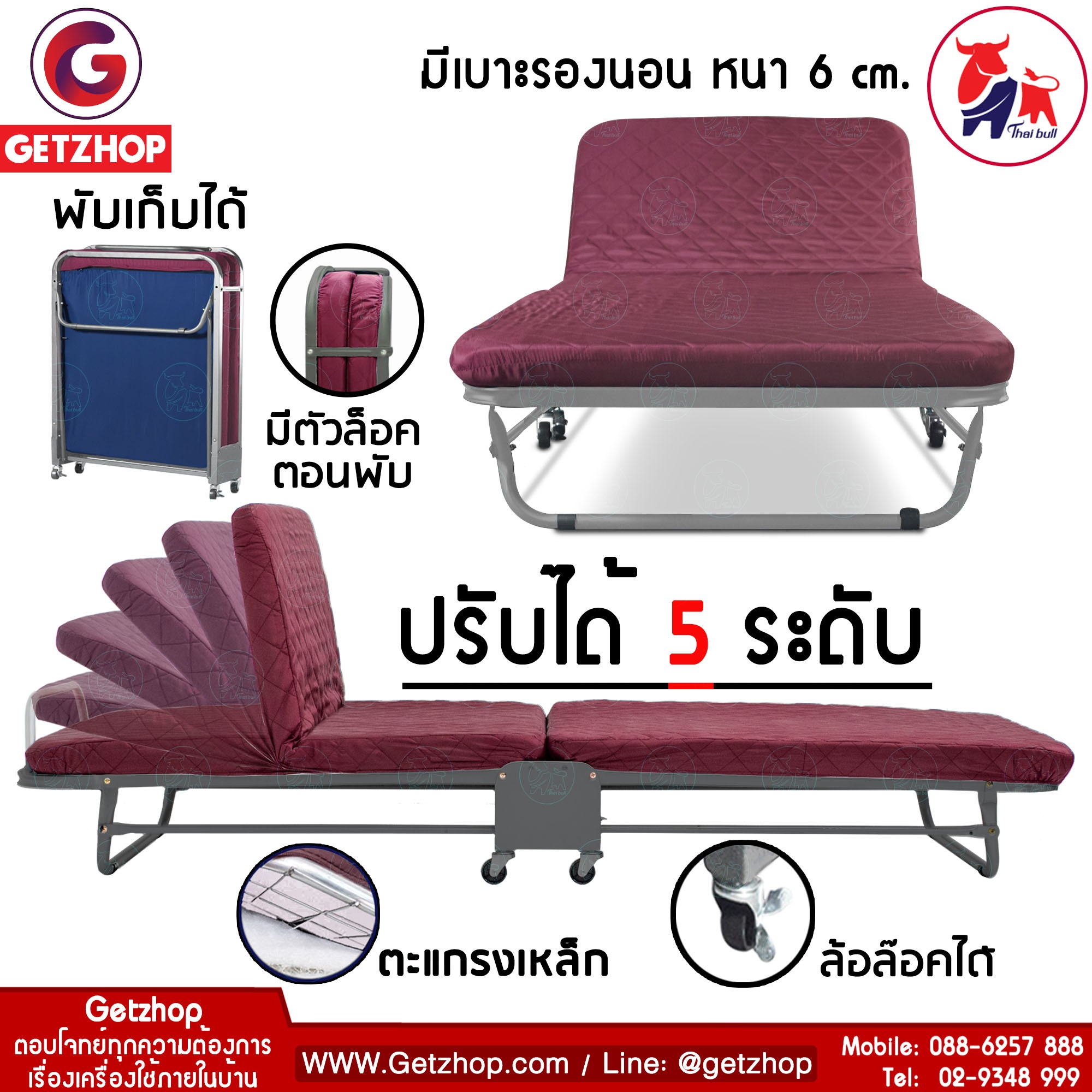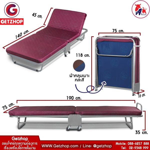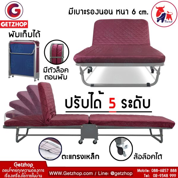 Thaibull รุ่น 2107 EZ-010 เตียงเสริมพับได้ พร้อมเบาะรองนอน เตียงเหล็ก มีล้อ (190x75x37 cm.) 2107 EZ-010 (Red)