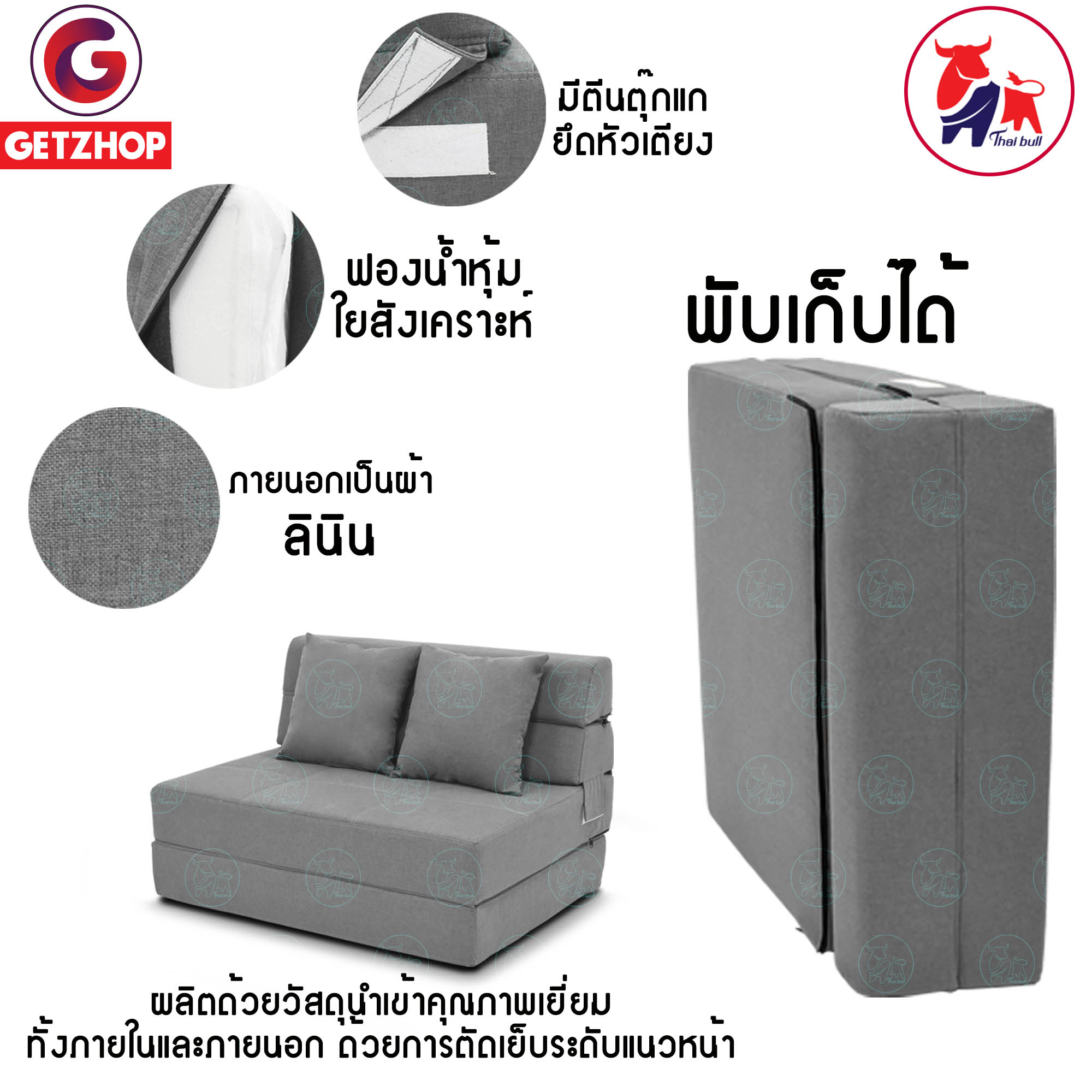 Thaibull เตียงโซฟา โซฟาเบด โซฟาปรับนอน 2 ที่นั่ง Sofabed รุ่น OLT501-150 ขนาด 150*190*16 cm. (5ฟุต) แถมฟรี! หมอน 2 ใบ + ผ้า (คละแบบ)