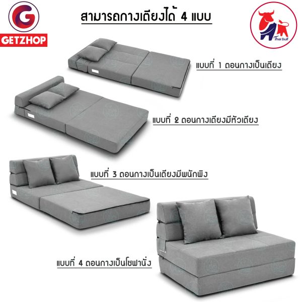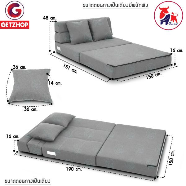 Thaibull โซฟาเบด โซฟาปรับนอน 2 ที่นั่ง Sofabed รุ่น OLT501-150 ขนาด 150*190*16 cm. (5ฟุต) แถมฟรี! หมอน 2 ใบ + ผ้า (คละแบบ)