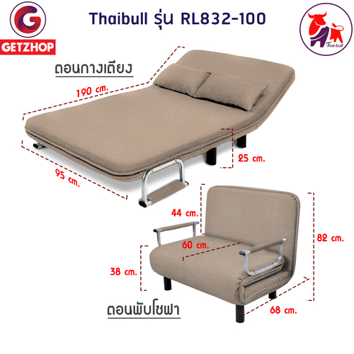 Thaibull adjustable sofa, sofa bed, multi-purpose sofa, model RL832-100, free! 2 pillows