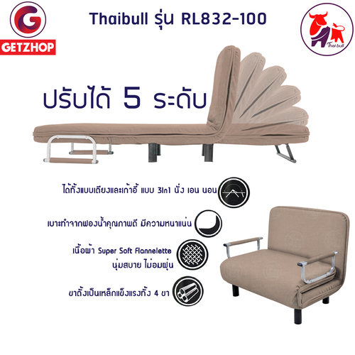 Thaibull โซฟาปรับนอนได้ โซฟาเบด โซฟาอเนกประสงค์ รุ่น RL832-100 แถมฟรี! หมอน 2 ใบ