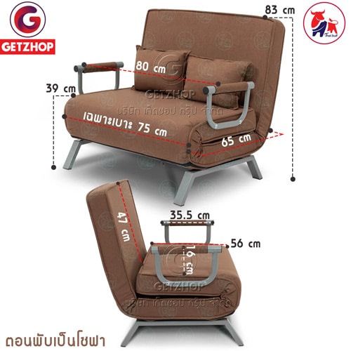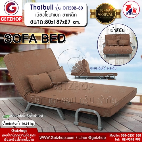 Thaibull โซฟาปรับระดับนอน 180 องศา โซฟาเบด โซฟานอนได้ เตียงโซฟา รุ่น OLT502-80