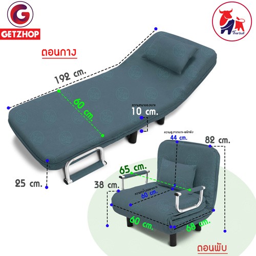 Thaibull โซฟาเบด เตียงนอน โซฟานั่งและเตียงนอน Sofa Bed (3IN1) รุ่น RL832-65 ขนาด (65x 192 x25 cm.)