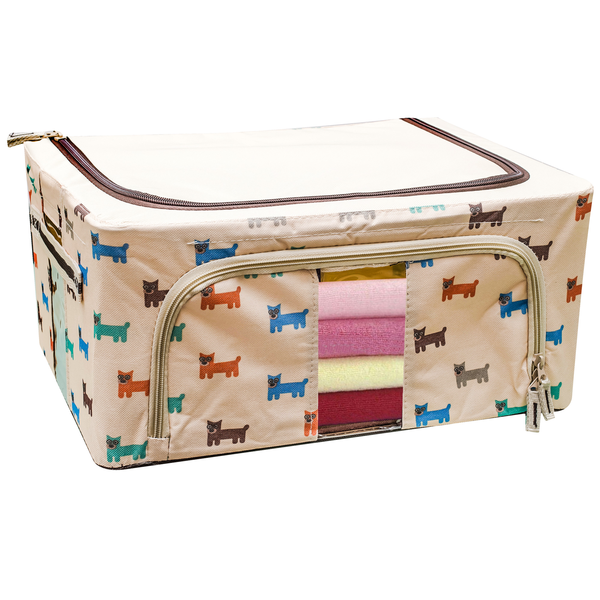 GetZhop กล่องเก็บของเอนกประสงค์ ลายสุนัข ขนาด44ลิตร (สีน้ำตาลอ่อน)