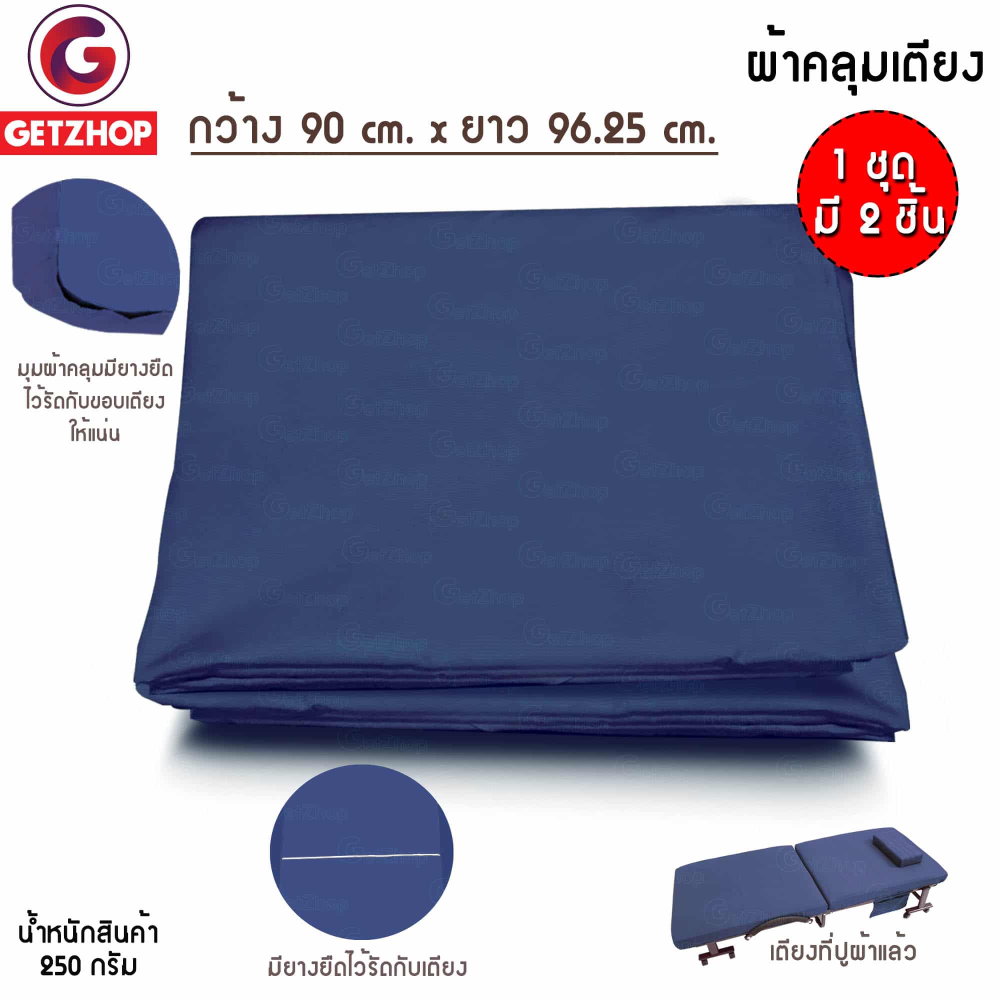 Getzhop ชุดผ้าปูเตียง ผ้าคลุมเตียง ผ้าคลุมที่นอน สำหรับ เตียงเสริม เตียงพับอเนกประสงค์ 90*96.25 (1Set/2ชิ้น) Blue