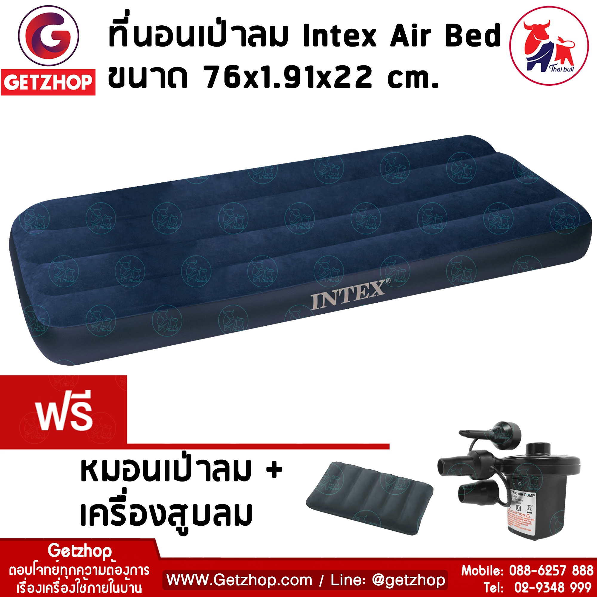 Getzhop ที่นอนเป่าลม AIR BED (Size 76 x 191 x 22 cm.) – Blue (ฟรี! หมอนเป่าลม + ที่สูบลม)