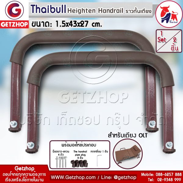 Thaibull ราวกั้นเตียง ที่จับเตียง ราวจับ High Handrails พร้อมอะไหล่ประกอบ ขนาด 1.5x43x27 cm. (1 Set/2 ชิ้น)