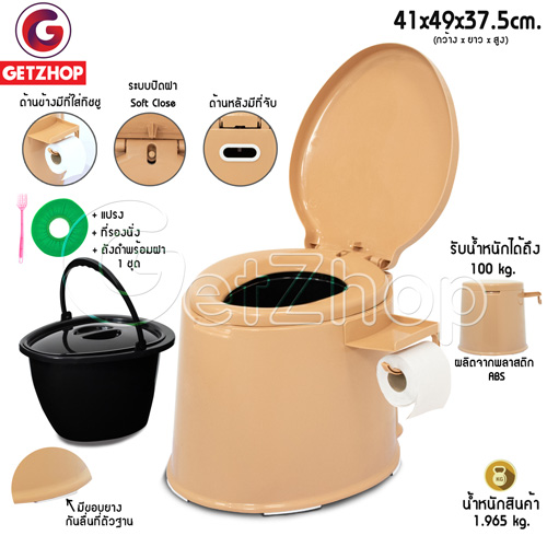 ขนาดสุขภัณฑ์เคลื่อนที่ (กว้าง x ยาว x สูง) : (41*49*37.5cm.)สูงจากพื้น-ฝาปิด