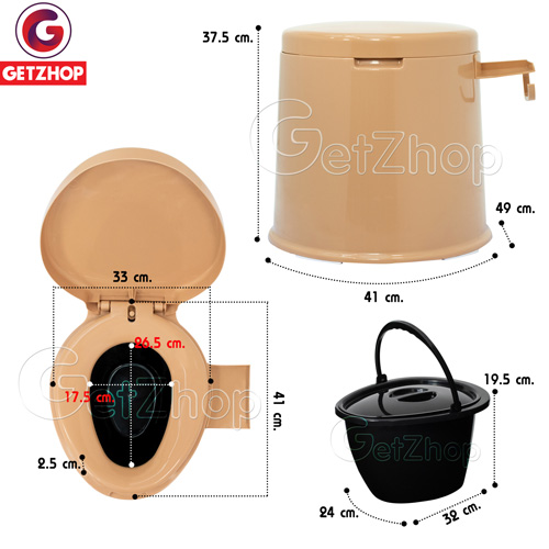 ขนาดสุขภัณฑ์เคลื่อนที่ (กว้าง x ยาว x สูง) : (41*49*36cm.)สูงจากพื้น-ถึงที่นั่ง