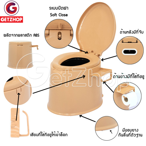 Getzhop สุขาเคลื่อนที่ ส้วม สุขาผู้ป่วย ที่นั่งถ่ายแบบเคลื่อนที่ มีที่กันลื่น พร้อมถัง 1 ใบ+ที่ใส่ทิชชูและที่วางมือถือ รุ่น JJX