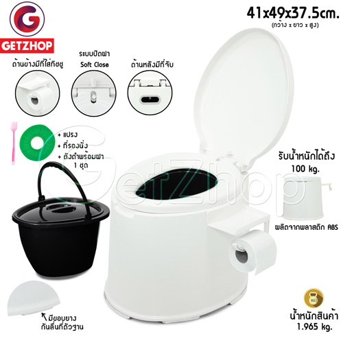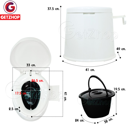 ขนาดสุขภัณฑ์เคลื่อนที่ (กว้าง x ยาว x สูง) : (41*49*37.5cm.)สูงจากพื้น-ฝาปิด