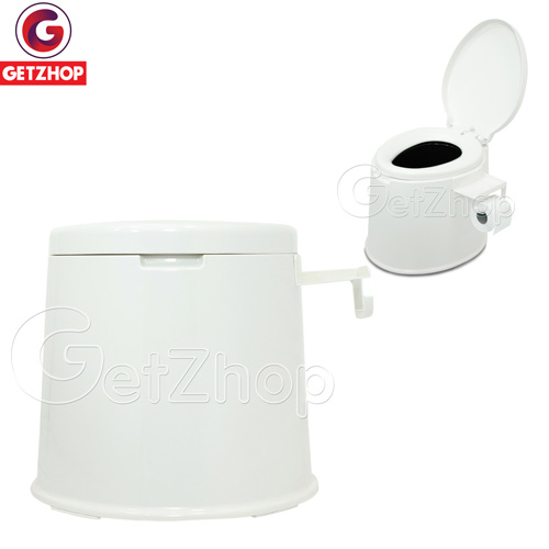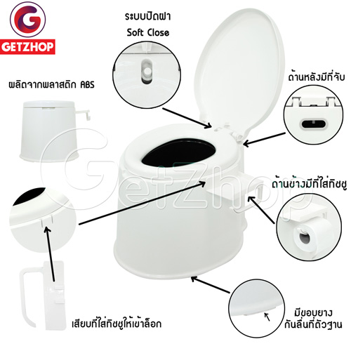 Getzhop สุขาเคลื่อนที่ ส้วม สุขาผู้ป่วย ที่นั่งถ่ายแบบเคลื่อนที่ มีที่กันลื่น พร้อมถัง 1 ใบ ที่ใส่ทิชชูและที่วางมือถือ รุ่น JJX (White)