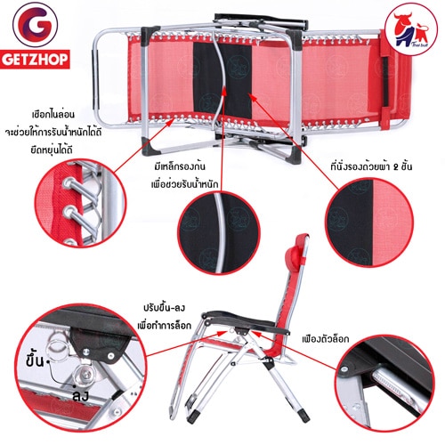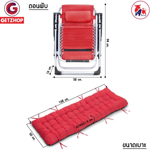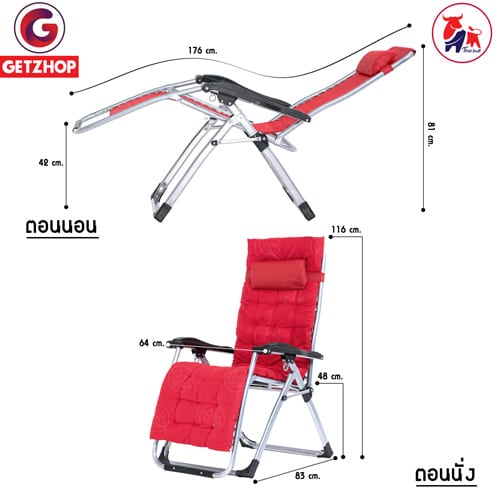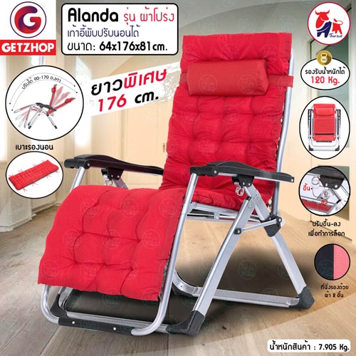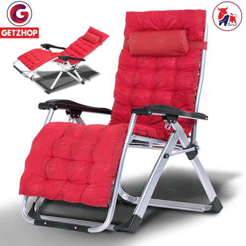 Getzhop เก้าอี้พับได้ เก้าอี้ปรับเอนนอน เก้าอี้พักผ่อน Alanda รุ่นผ้าโปร่ง โครงสีเงิน พร้อมเบาะ (สีแดง)