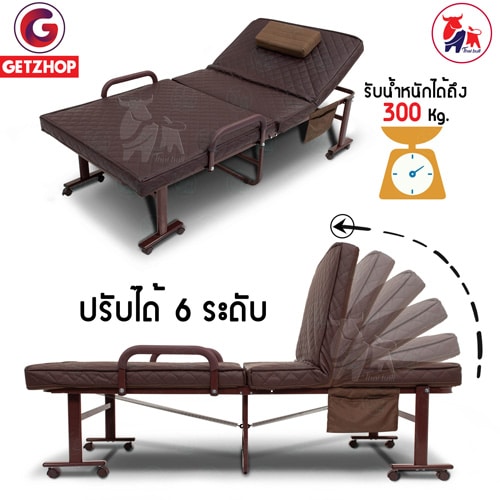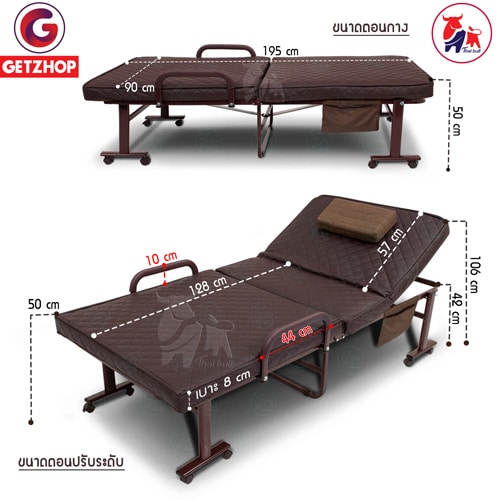 Getzhop เตียงนอนพับได้ เตียงพร้อมเบาะรองนอน เตียงผู้ป่วย รุ่นสูงพิเศษ 50 cm.Thaibull OLT150-90 ขนาด 90x195x50 cm.(PU)