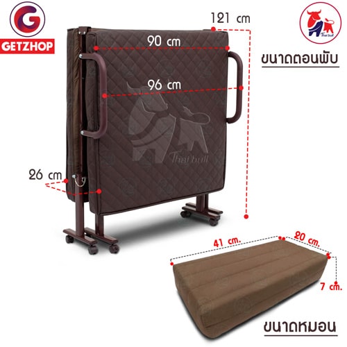 ขนาดเตียงตอนพับ : กว้างxยาวxสูง (26x90x121 cm.)