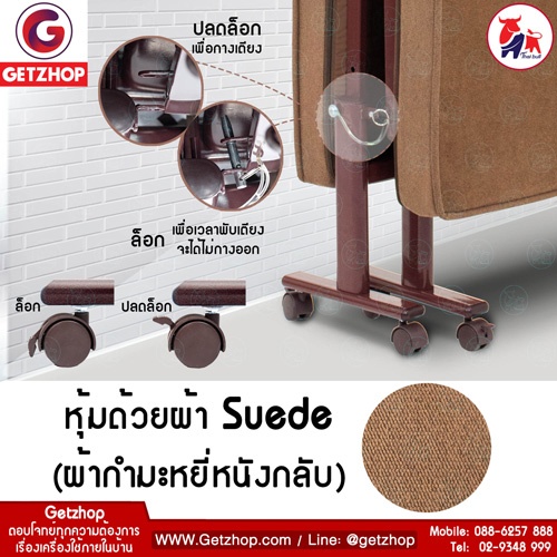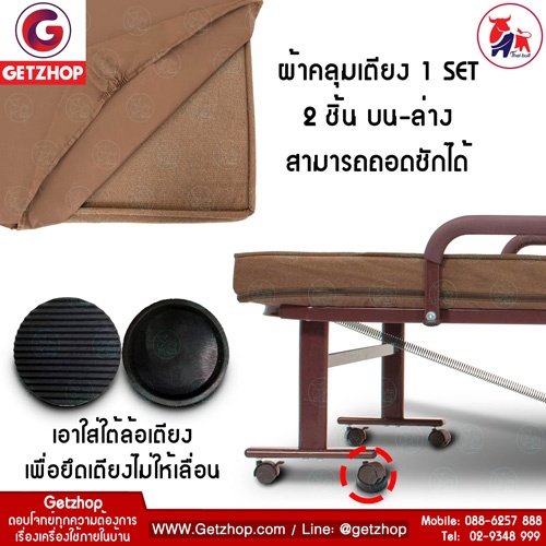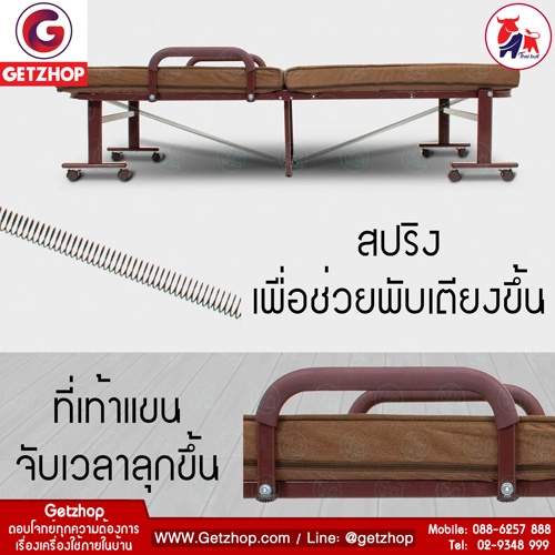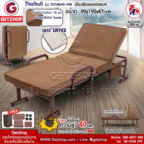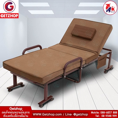 Getzhop เตียงนอนพับได้ เตียงเหล็ก เตียงผู้ป่วย เตียงมีล้อเลื่อน (ล้อใหญ่ขึ้น) Thaibull รุ่น OLTLM645-90B ขนาด 90x190x47cm.(Brown) รุ่นพิเศษ! เบาะ Latex-ผ้าคลุมกำมะหยี่หนังกลับ(Suede) แถมฟรี! อุปกรณ์เสริม
